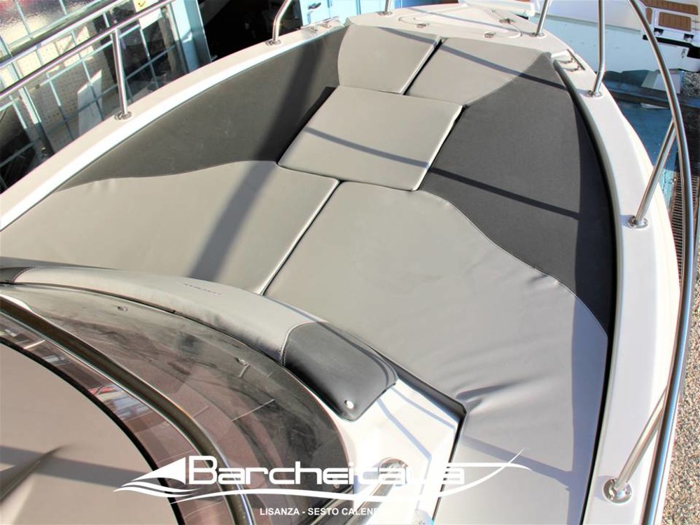 Molto spazioso il prendisole di prua con comodo accesso da entrambi i lati della consolle di guida, pozzetto comodo, con una suddivisione degli spazi molto importante e che offre molti utili accessori di serie come il fornello ed il lavello sotto la seduta di guida.