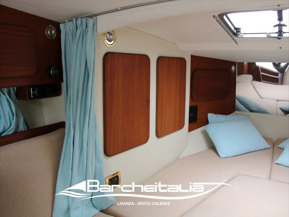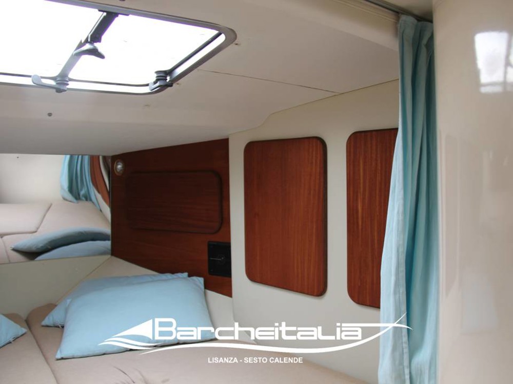 E' un motoscafo natante dalle grandi dimensioni sia per gli spazi in pozzetto ma soprattutto in cabina, garantendo tutti i confort solitamente presenti nei modelli cabinati in quanto, a bordo di questo meraviglioso progetto del cantiere Cramar troviamo ben due cabine per ospitare 4 posti letto, un bagno separato e cucina attrezzata con piano cottura a 2 fuochi e lavello ovale.